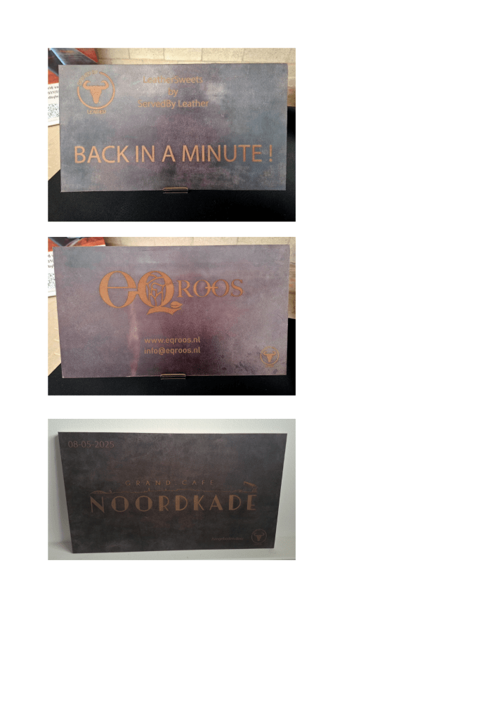 Een naam, een boodschap of een logo, gelaserd op hoogwaardig leer. Een krachtig statement voor aan de muur, of subtiel accent in een ruimte waar uitstraling telt.
